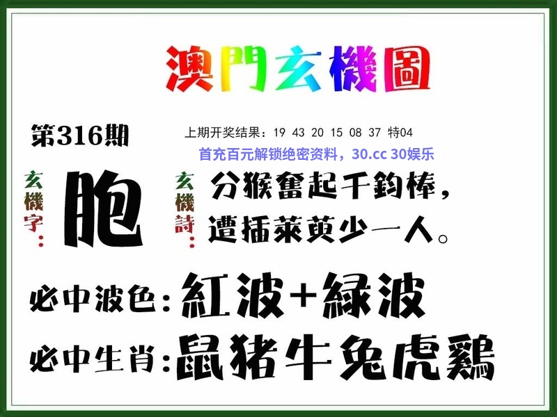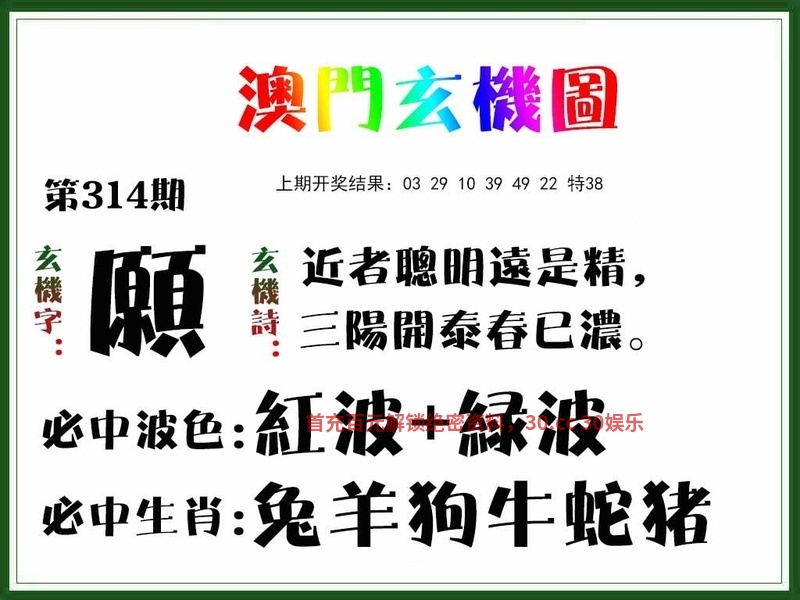 玄机诗:近者聰明遠是精,三陽開泰春已濃。 必中波色:红波+绿波 必中生肖:兔羊狗牛蛇猪 |