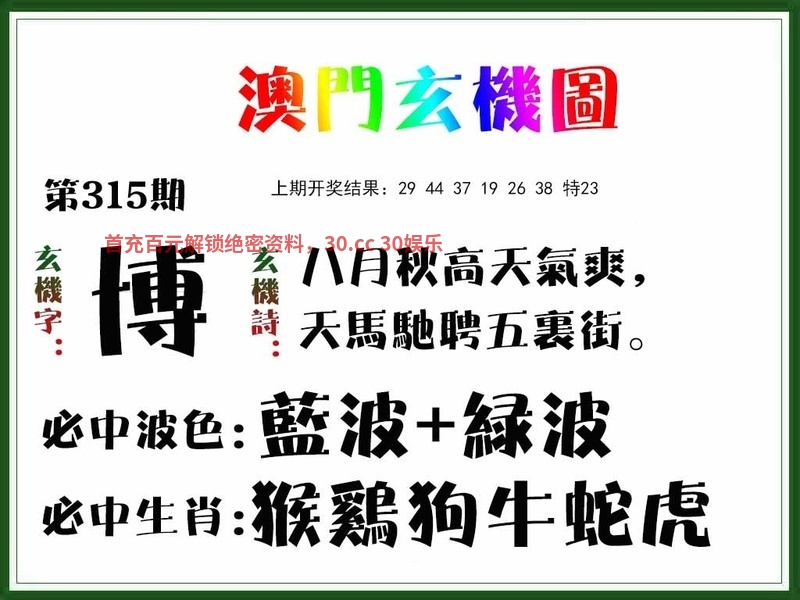 玄机诗:八月秋高天氣爽,天馬馳聘五裏街。 必中波色:蓝波+绿波 必中生肖:猴鸡狗牛蛇虎 |